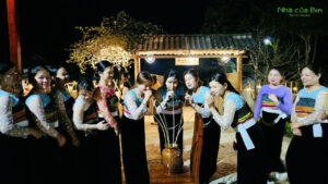 The cultural night at Nhà Của Bin has no elaborate stage, only a warm fire,...
